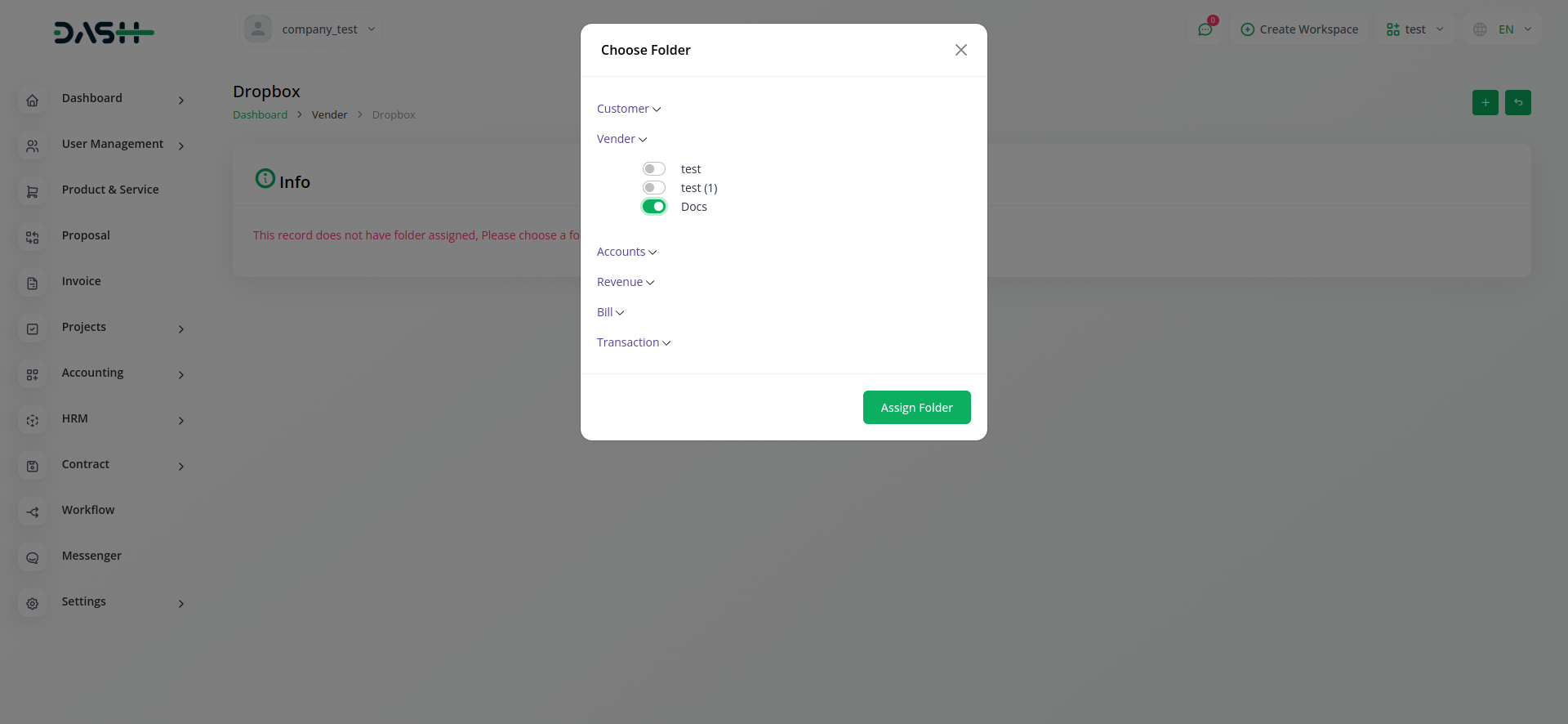Unleash the full potential of collaboration and organization with our groundbreaking feature – the ability to seamlessly link Dropbox folders with submodules. With this innovative enhancement, Workdo-dash empowers you to synchronize your Dropbox documents with specific submodules, ensuring that your files are precisely where you need them. Whether you're managing projects, tasks, or any other submodule, this feature lets you effortlessly integrate your essential documents, images, and files.