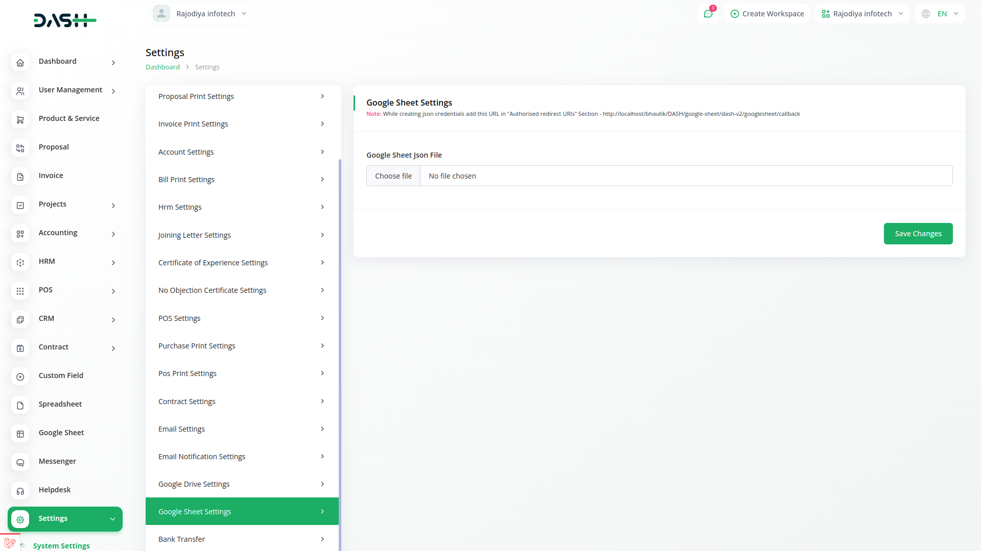 1. Upload your credentials json file in (System Settings->Google Sheet Settings).