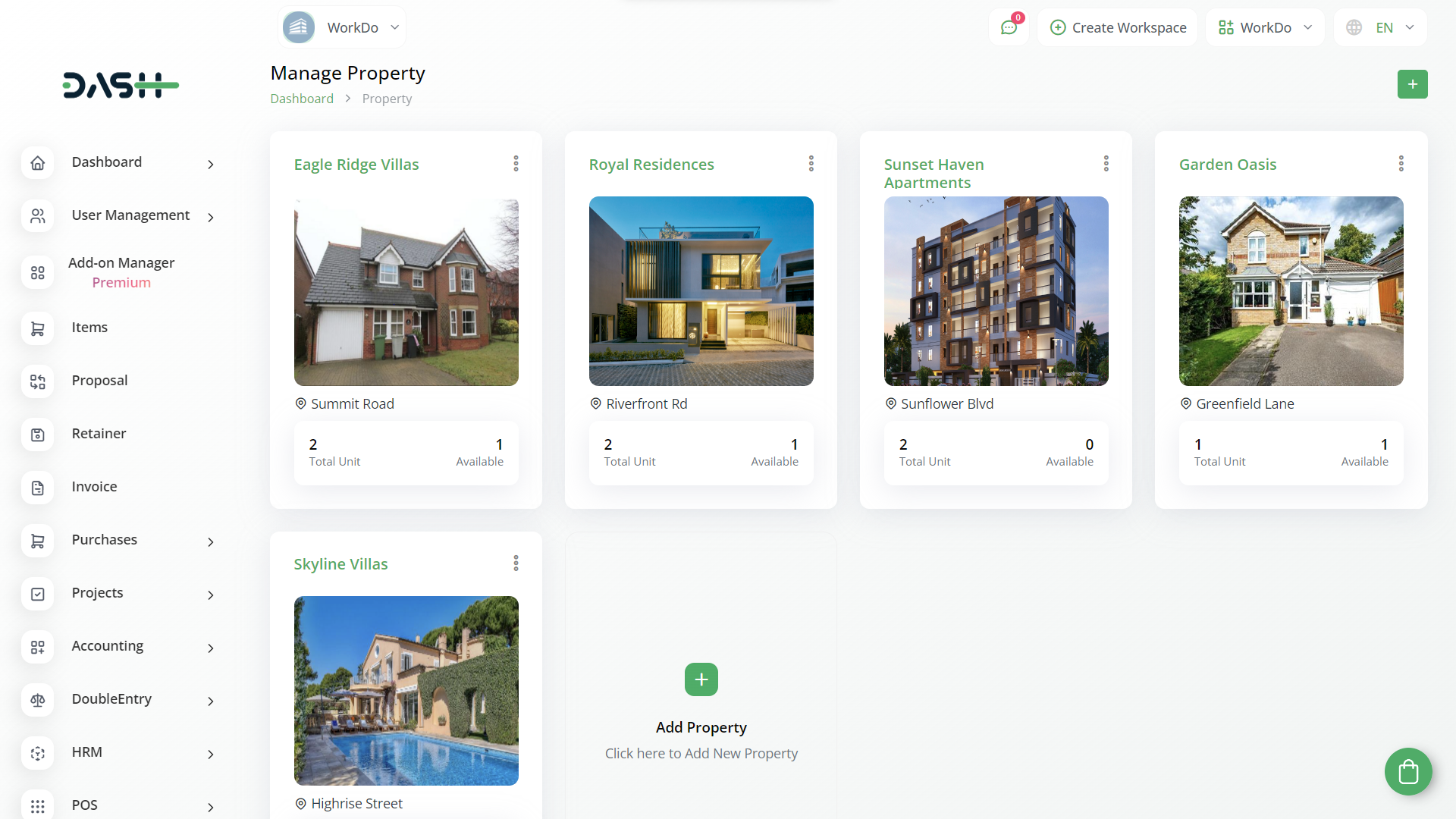 Optimize your property portfolio effortlessly using our Property Management Module, featuring intuitive tools for lease administration, tenant communication, and real-time performance analytics.