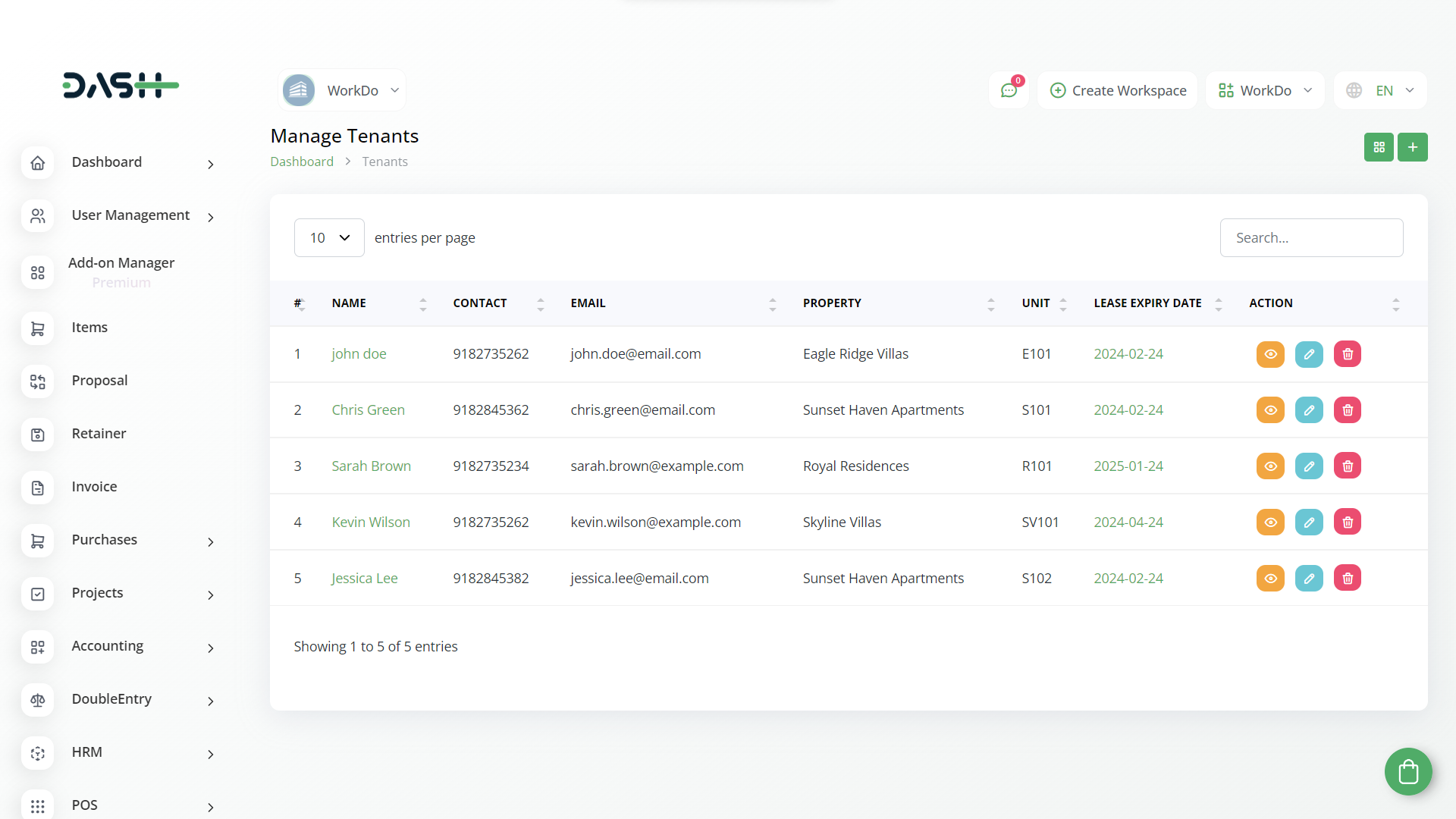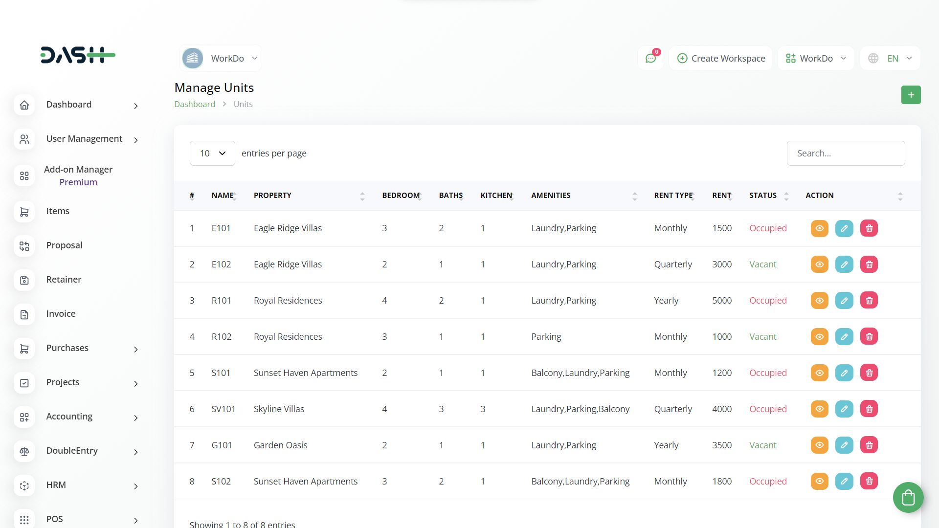 Modify and update your generated property management property units with ease. Add new property, unit and his details without stress. Property Management allows you to create and maintain the data of each tenant. You get access to all essential information through a well-maintained format.