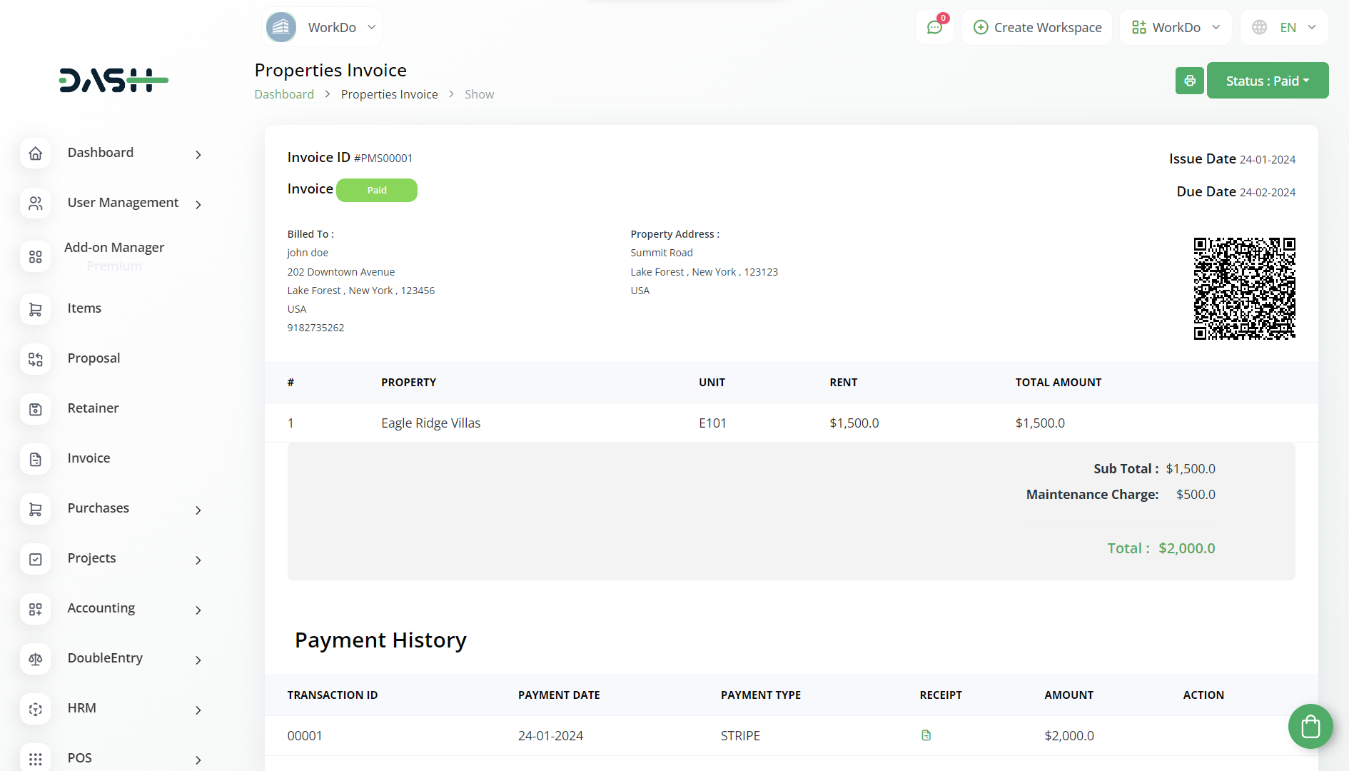 Control and keep track of your invoices with ease. Enhance property oversight and maximize efficiency with our user-friendly Property Management Module, offering a centralized platform for lease management, rent collection, and property maintenance.