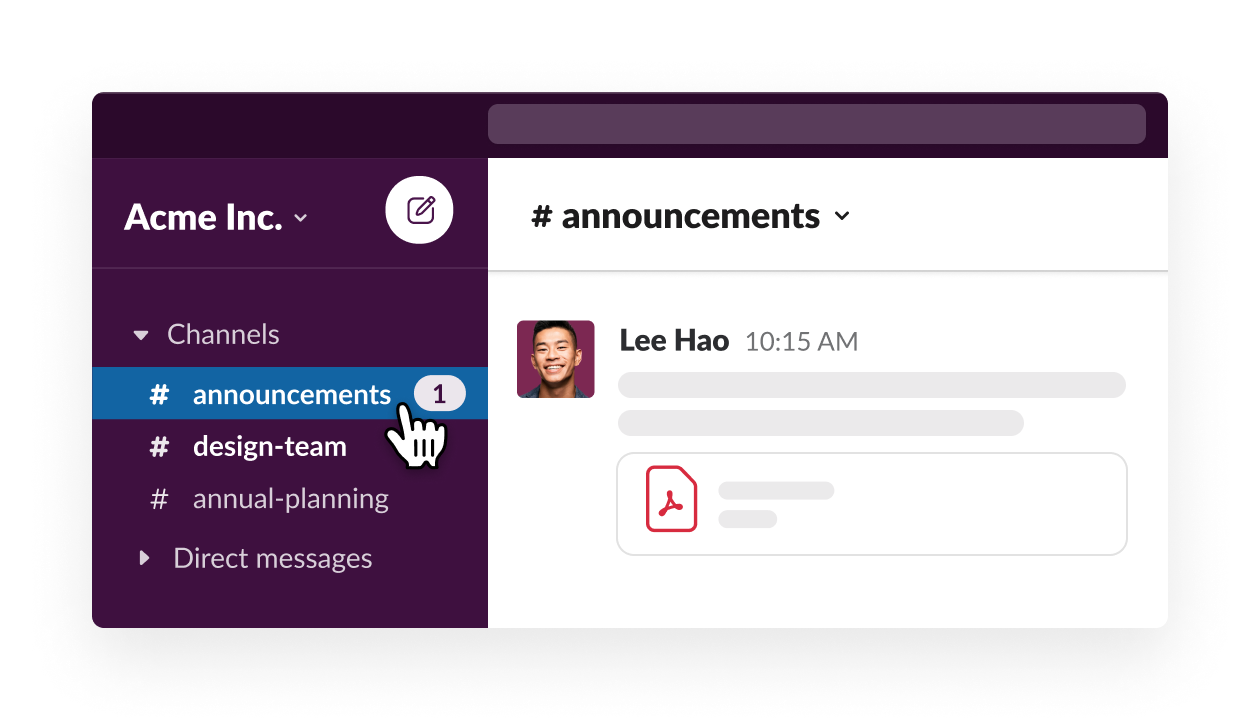 At the heart of Slack are channels: organised spaces for everyone and everything that you need for work. In channels, it’s easier to connect across departments, offices, time zones and even other companies.
