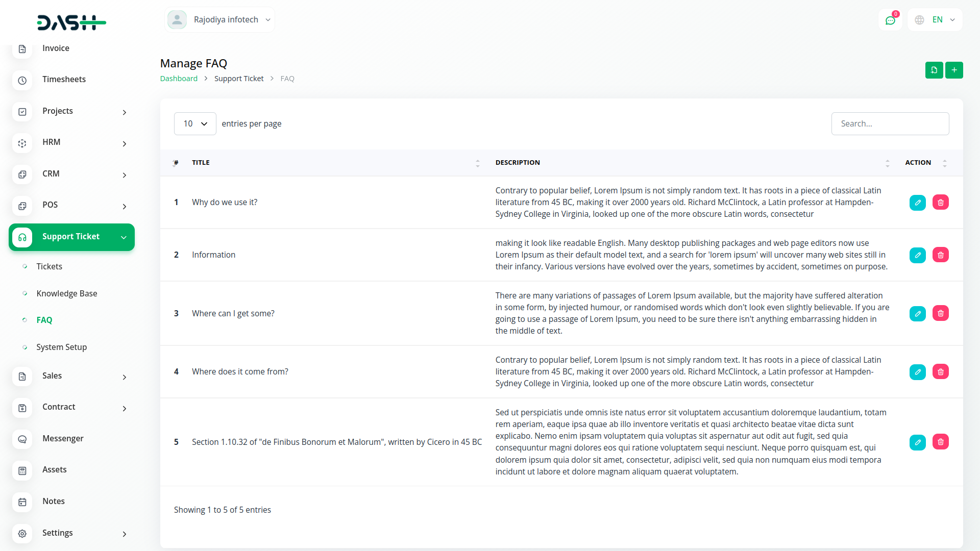 Add new tickets as and when required. Get a detailed list of all the generated tickets with their respective ticket IDs, categories, subject, status, and essential information. Edit them by adding a new response or changing the status with a simple click.